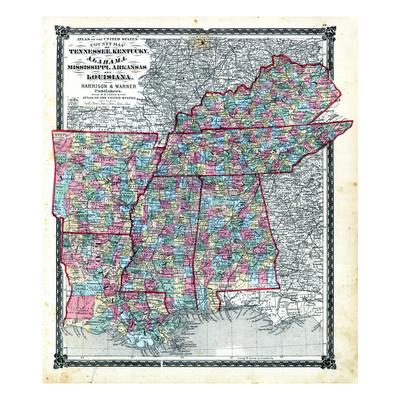 1876 County Map Tennessee Kentucky Alabana Mississippi Arkansas And Louisiana Missouri Unite Giclee Print Art Com